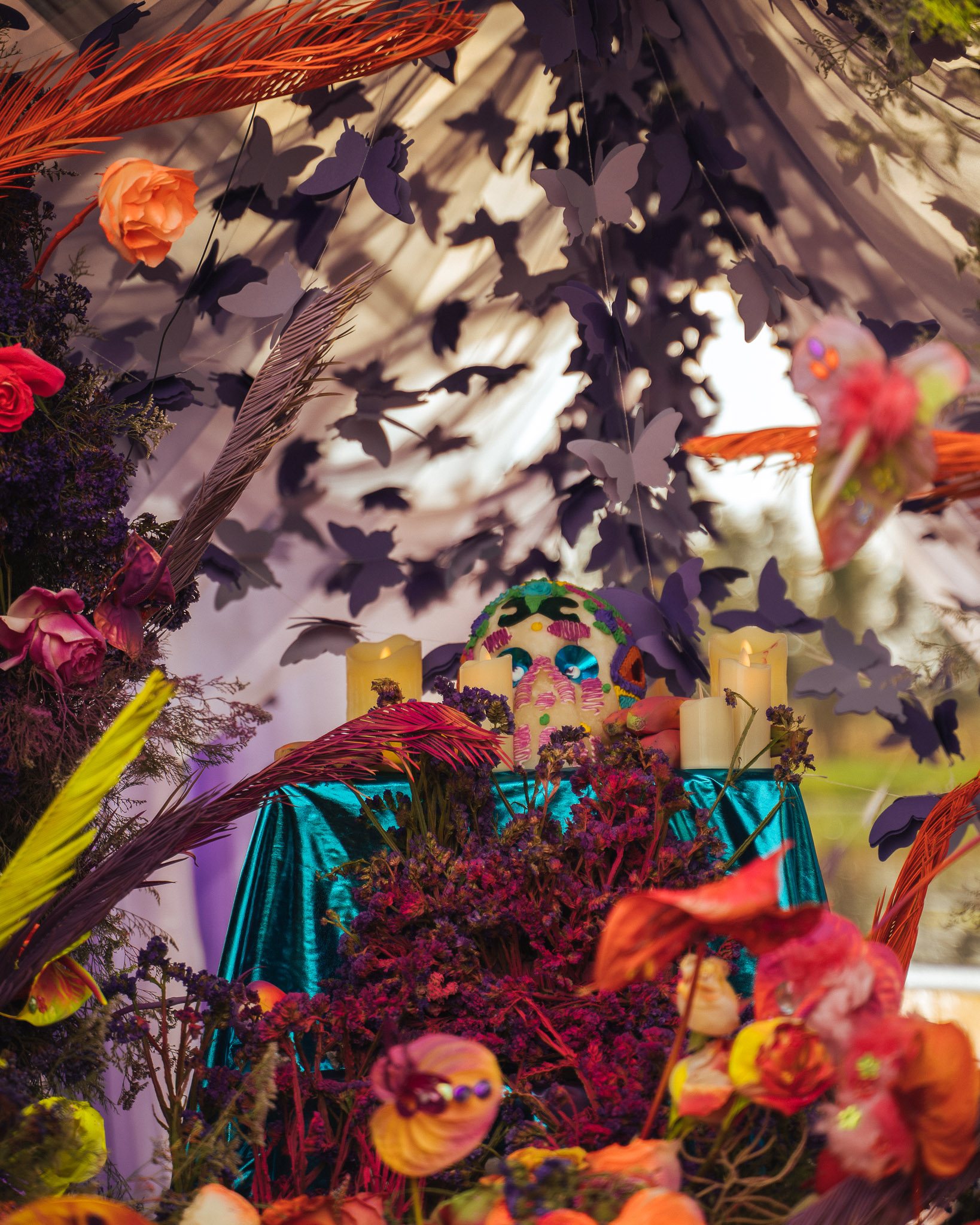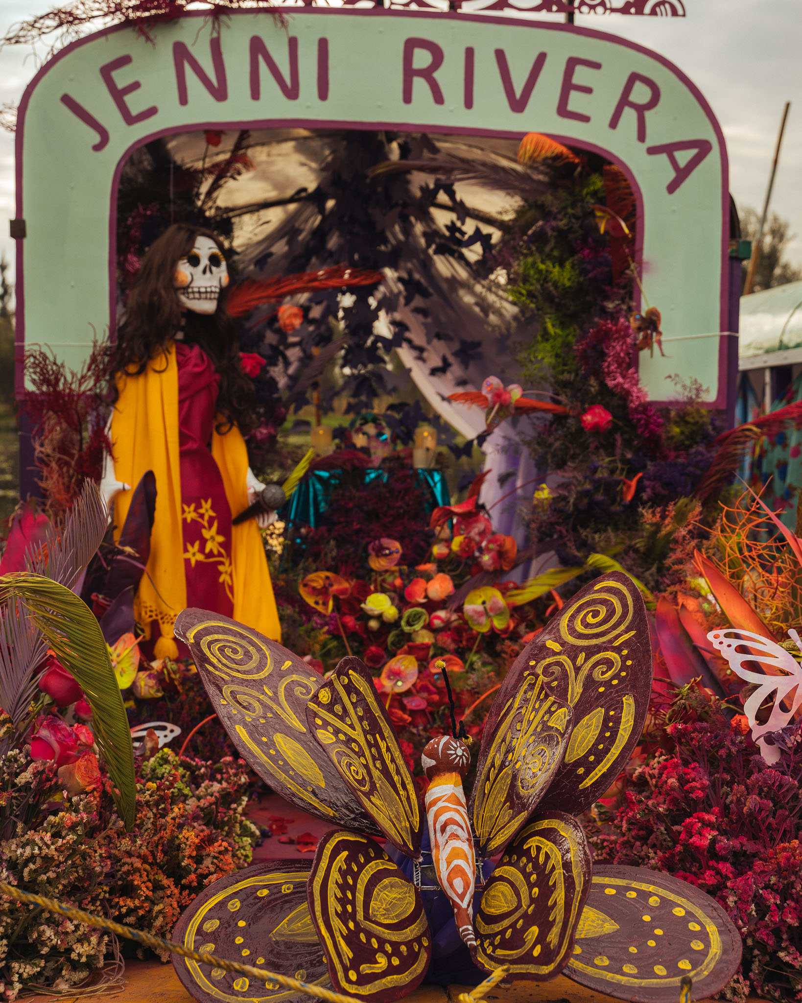 The centerpiece of the offering for Valentín Elizalde was a golden rooster; a prince’s crown along with his cape adorned that of José José; for the great Jenni Rivera, a butterfly was essential; a king’s throne for José Alfredo, and shining stars for our Juan Gabriel.