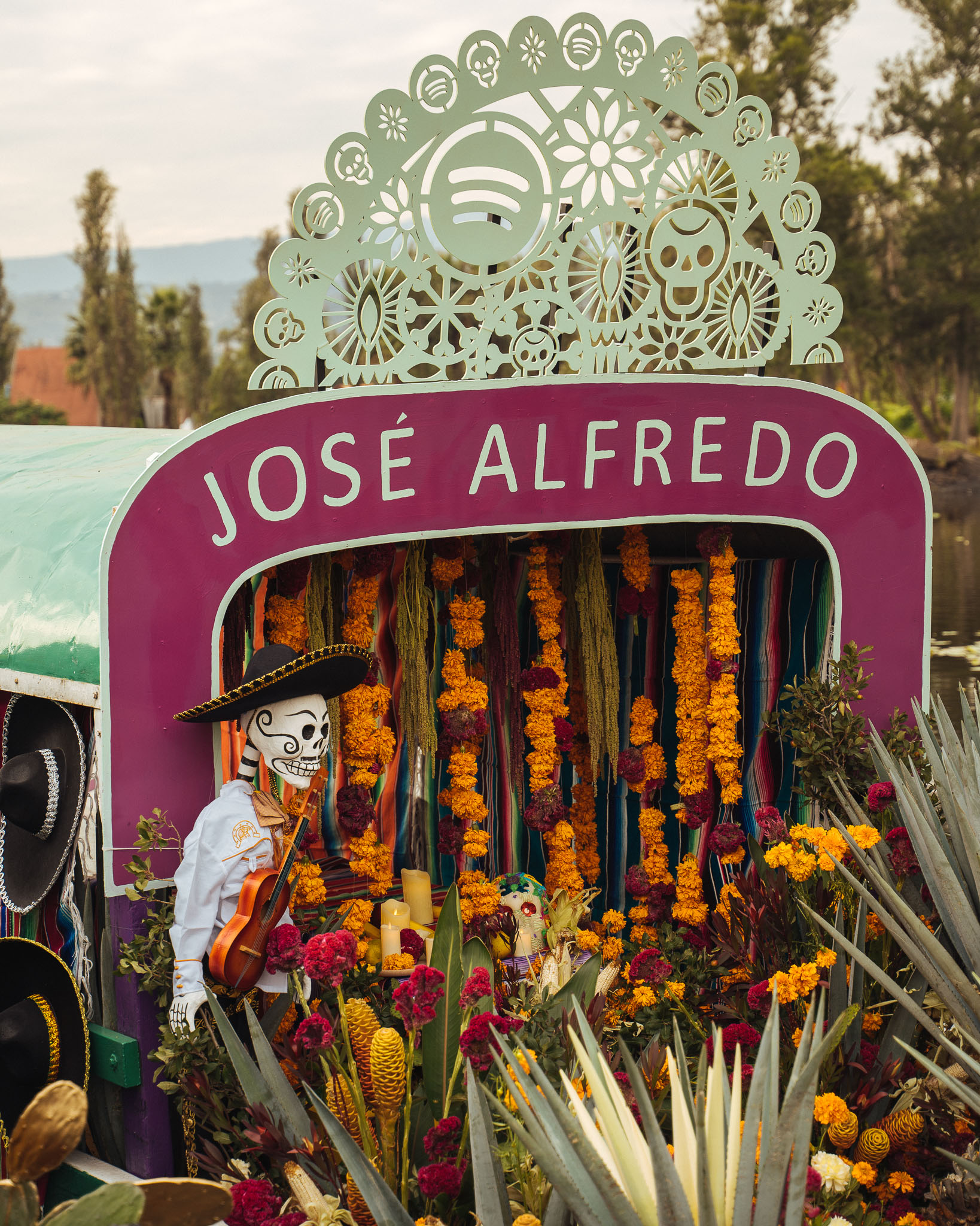 How can we celebrate music in an even more legendary way? Beyond creating a traditional offering and altar, we decided to take the experience to the mythical Xochimilco and create the first Musical Offerings. These offerings traveled through the canals of this iconic location during the week of the Day of the Dead.