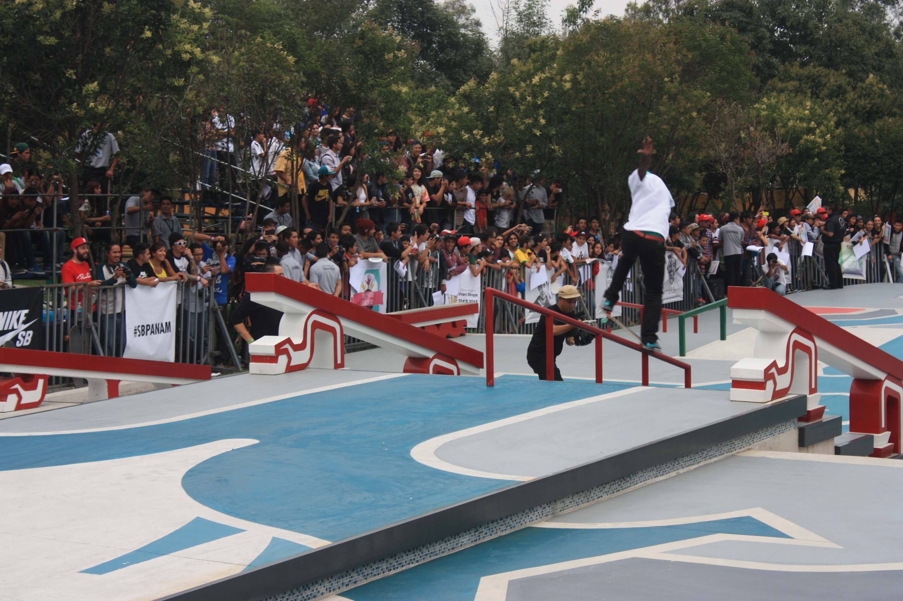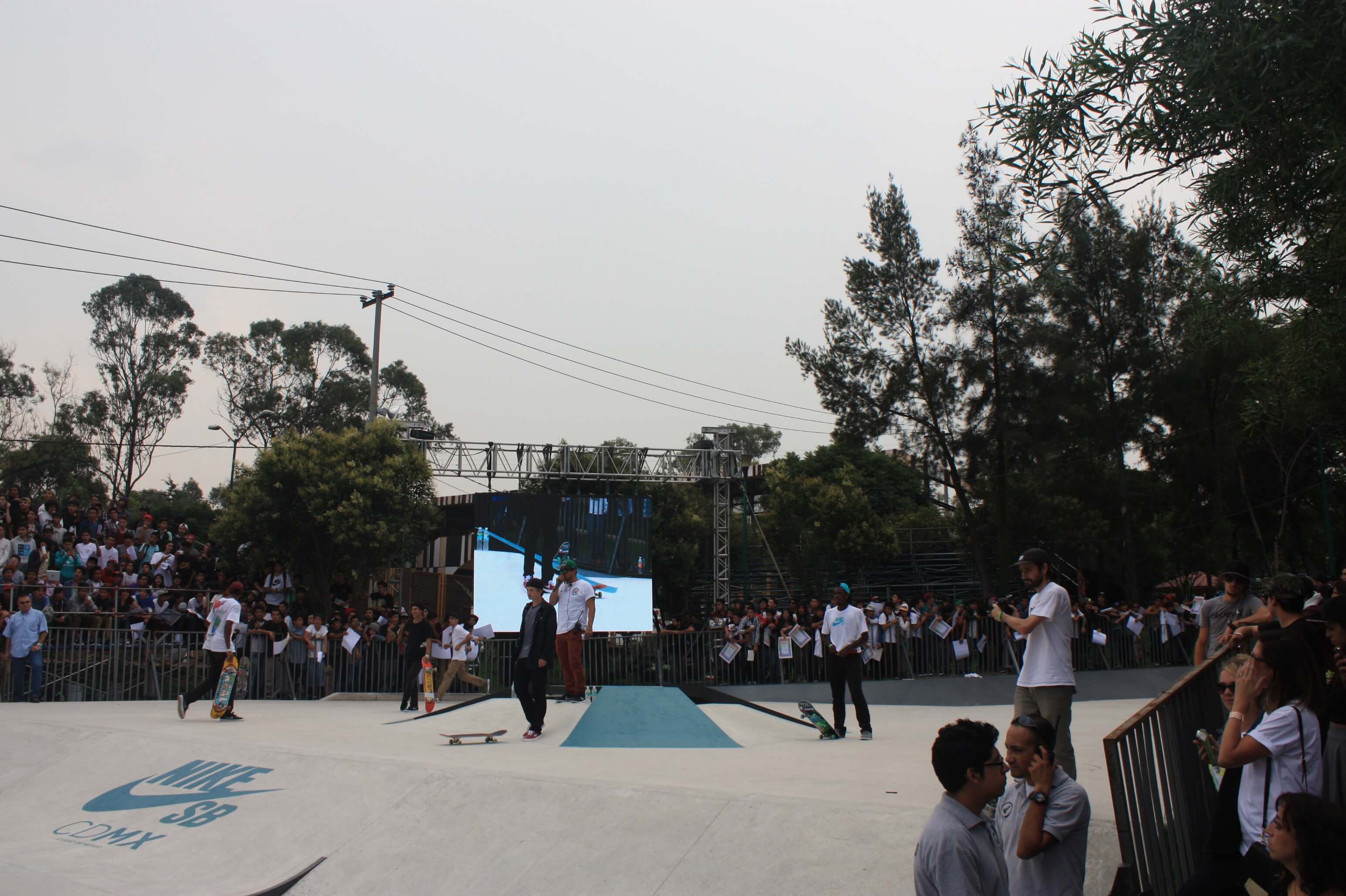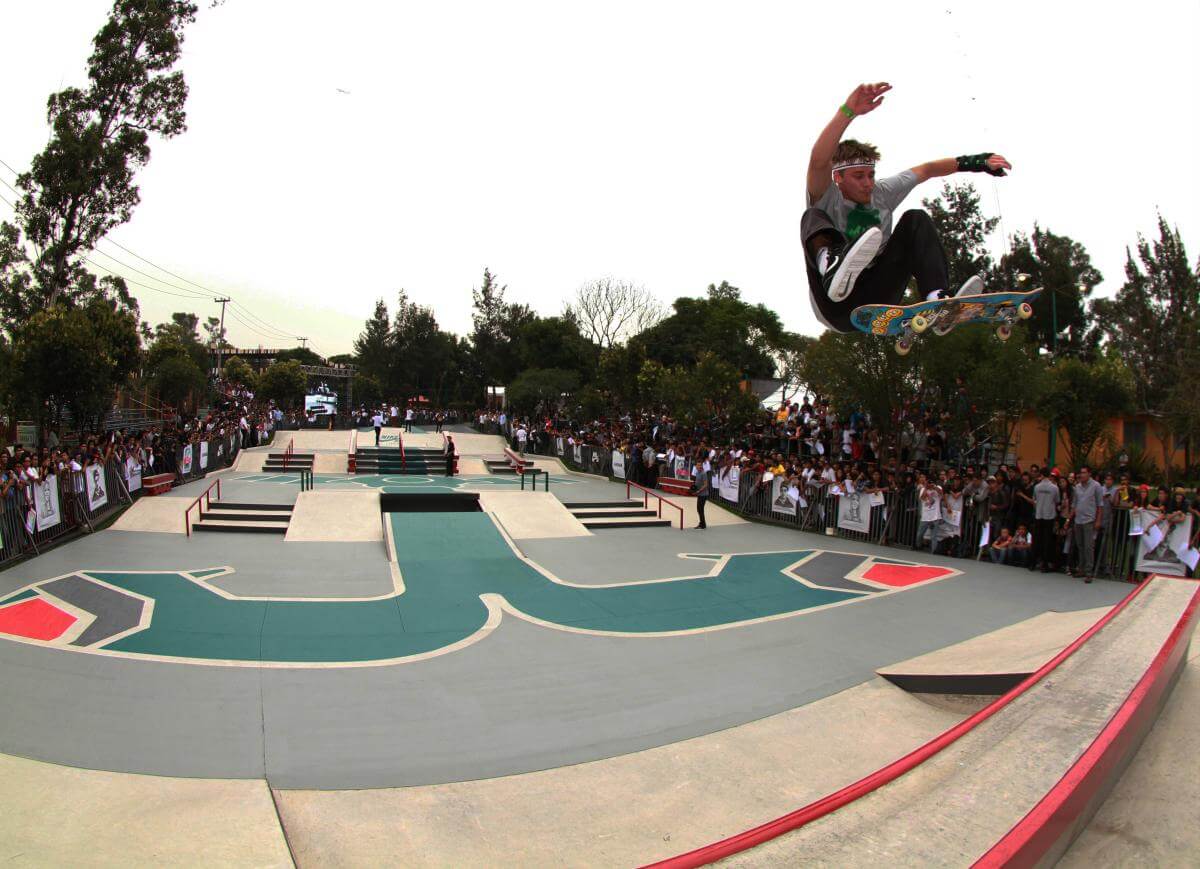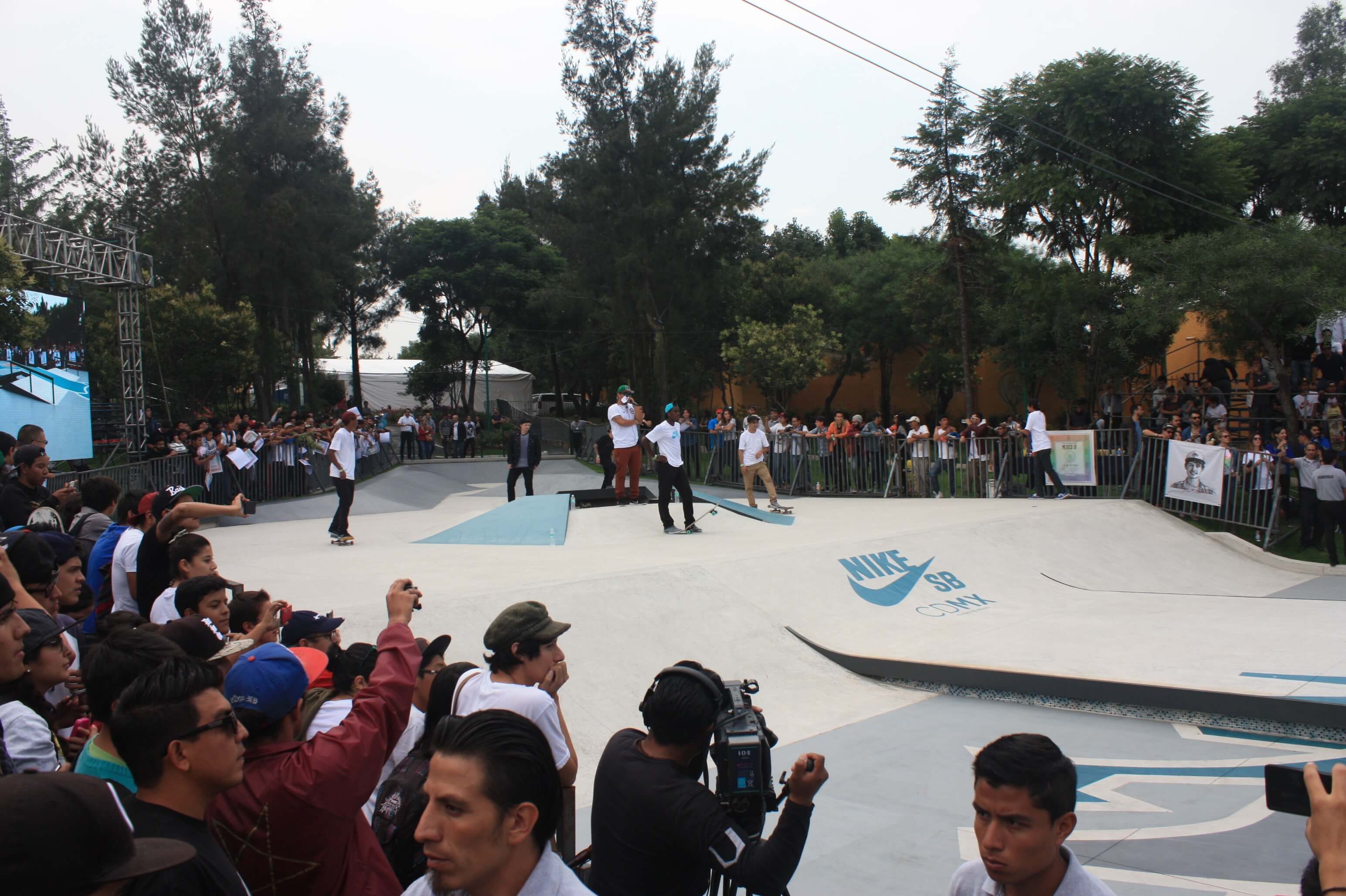 Nike SB has proposed the most unlikely places to skate and has taken over streets, parks, and public spaces to install sophisticated skateparks. Among the most memorable feats are the 28th floor of the Torre Latinoamericana in Mexico City, a skatepark on trajineras in Xochimilco, a skate camp in a monastery, skating inside schools, and a skatepark in the Zócalo (Plaza de la Constitución).
