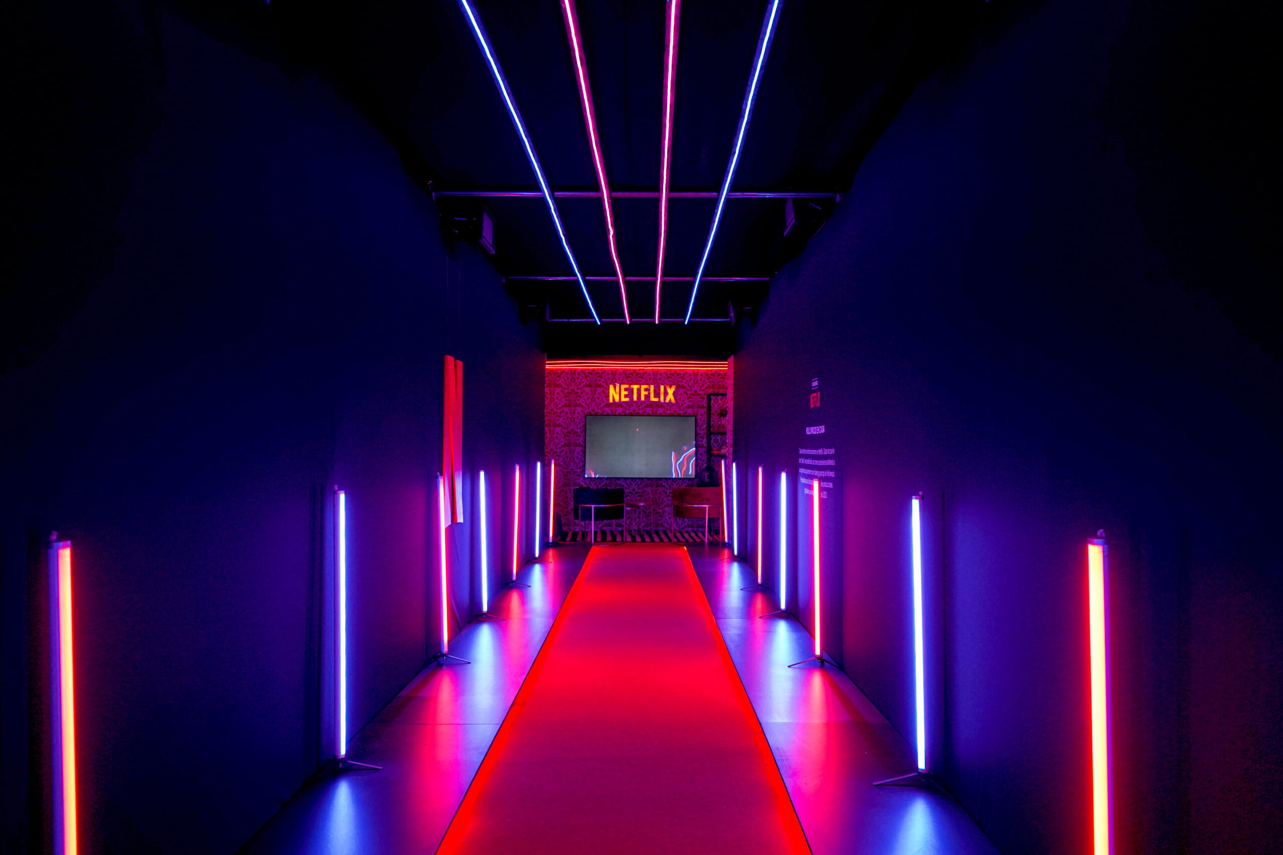 Our experience materialized as a real journey, with corridors guiding visitors through eight immersive areas, each dedicated to one of the categories of the Slate Announcement. Thus, visitors were able to discover at their own pace what Netflix had in store for them in 2023.