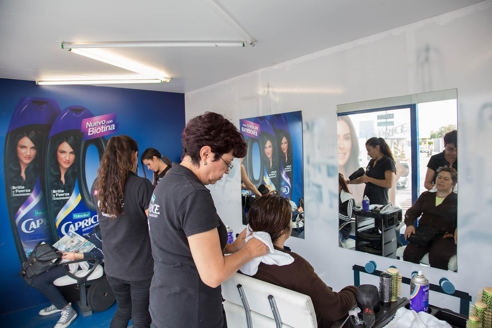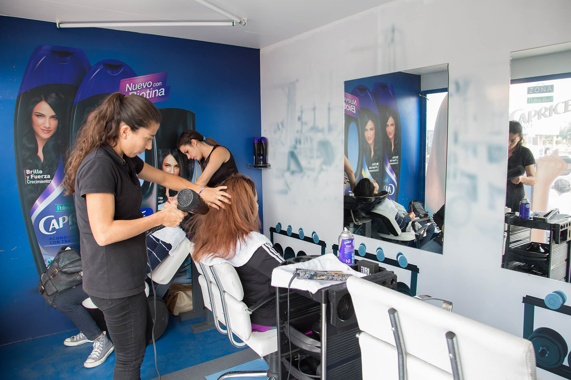 We created the Caprice Zone: a truck transformed into a gym-spa specialized in hair strengthening and care. Here, we tested the benefits of Caprice Biotin by washing, drying, and styling our consumers’ hair in under 15 minutes. This allowed them to experience the brand’s superior benefits, all without disrupting their daily routine.