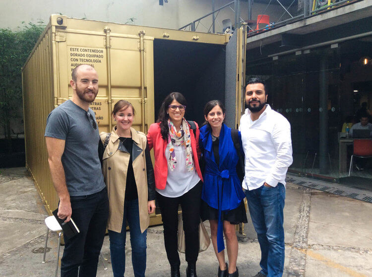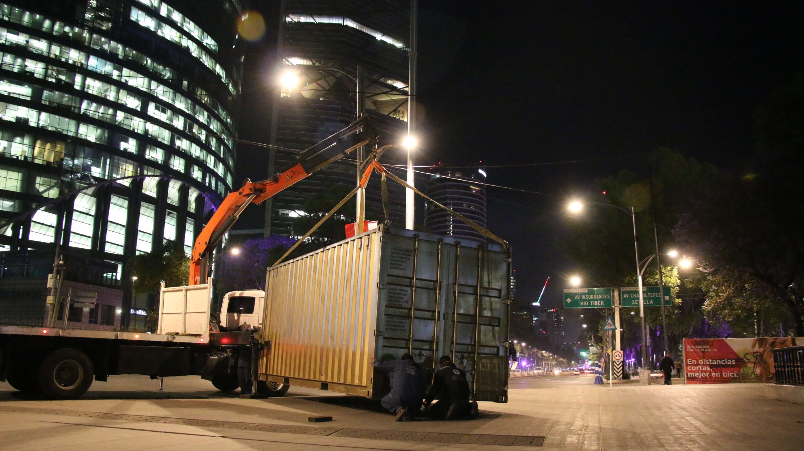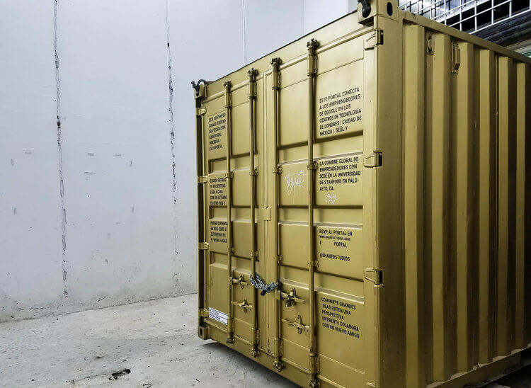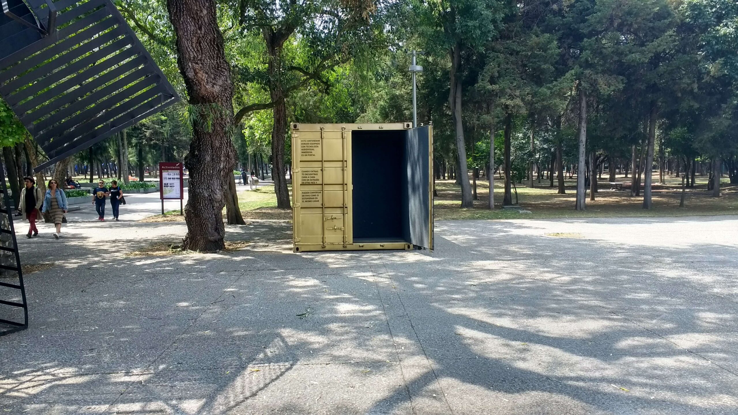 Colocar un contenedor dorado, equipado con tecnología audiovisual inmersiva, en puntos emblemáticos de la ciudad relacionados con el arte.