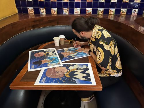 Ademas unimos a destacados artistas históricos con sus contemporáneos en obras de arte que permitieron a cada artista plasmar su visión sobre la música. Este evento tuvo lugar en el icónico Tenampa de la CDMX, cuna de los corridos. A la par de la exposición de estos murales, obsequiamos pósters de las ilustraciones exhibidas a los asistentes.